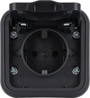 Рамка с крышкой для розетки W55, со шторками, с крышкой, с заземлением, одинарная, винтовые клеммы, цвет - антрацит