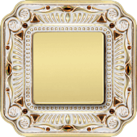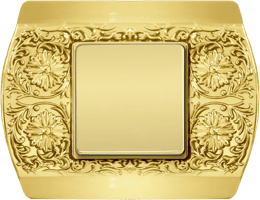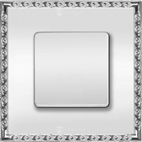 - Выключатели с оригинальными вставками – с узорами, мавританскими мотивами, металлическими орнаментами, в стилистике ар деко, тосканском стиле, с кристаллами и керамическими вставками.